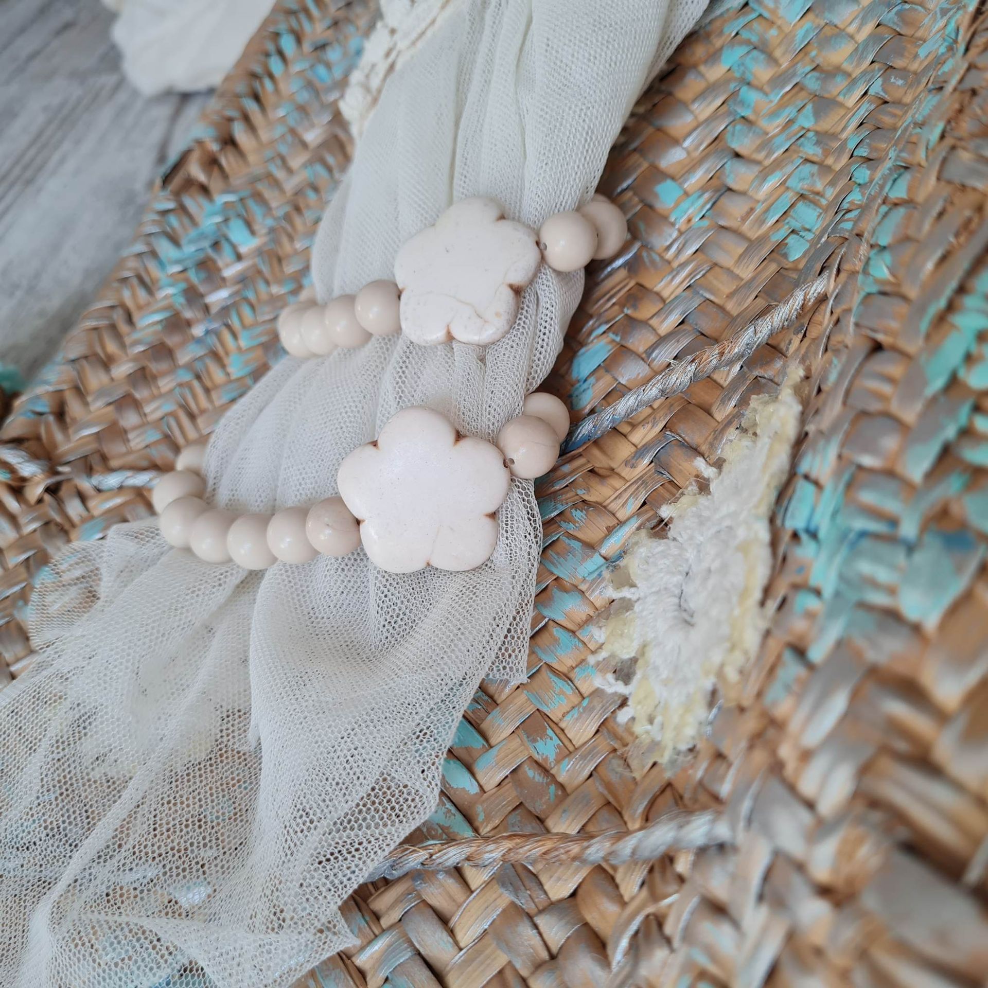 (Fleur pierre howlite crème. Taille de la fleur 28x28cm)