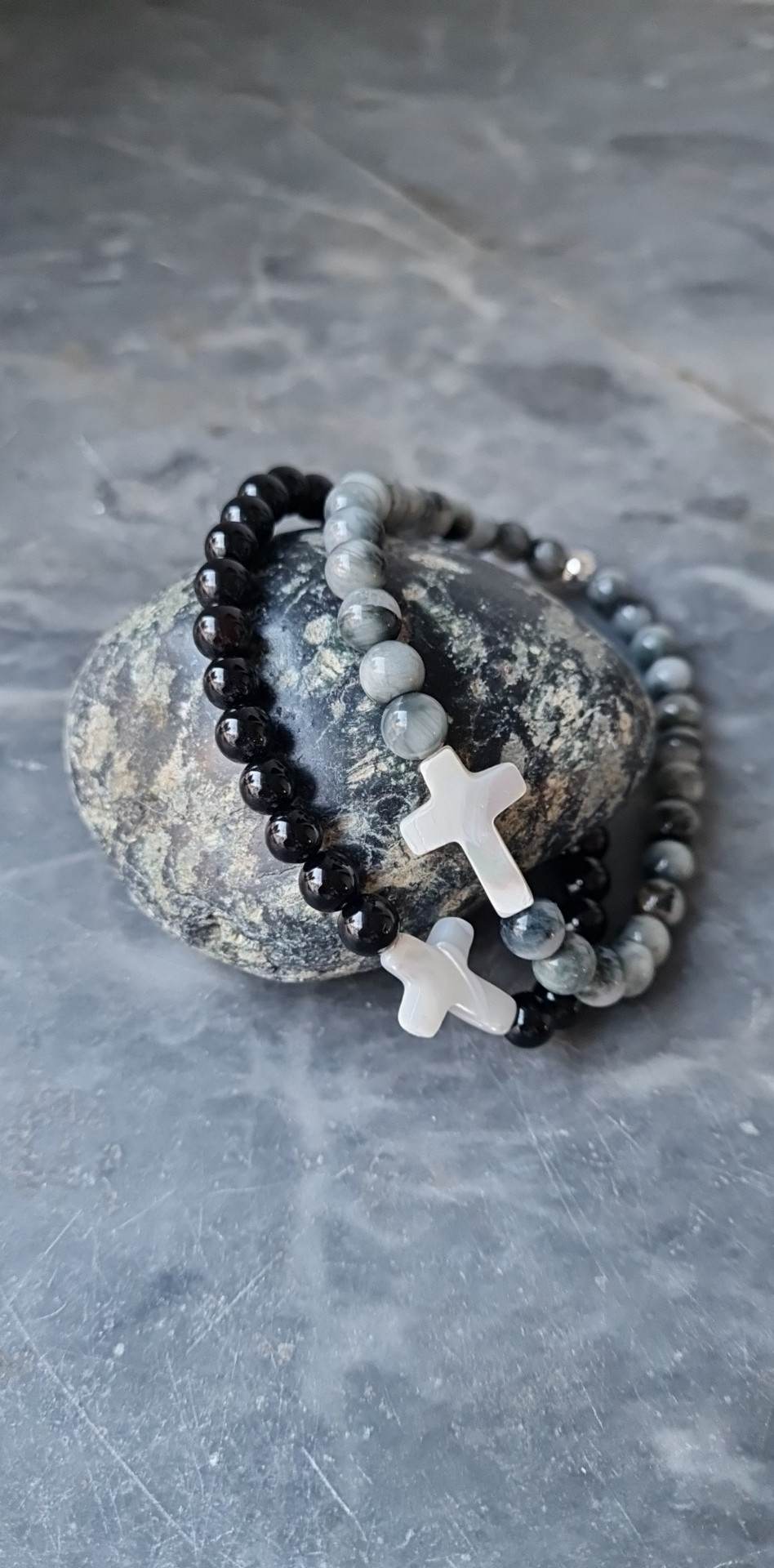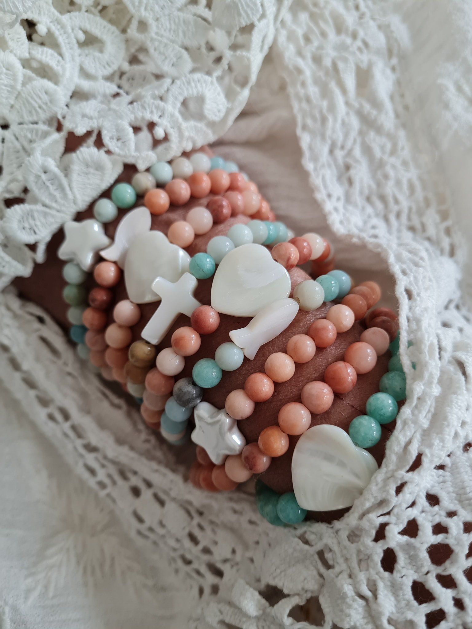 Têtes de mort acier - Tube inca acier- Croix acier - Croix d'agate noire ou croix de nacre - Cœur de nacre-coquillage - étoiles céramique - Main de Fatima nacre - Poisson nacre-coquillage